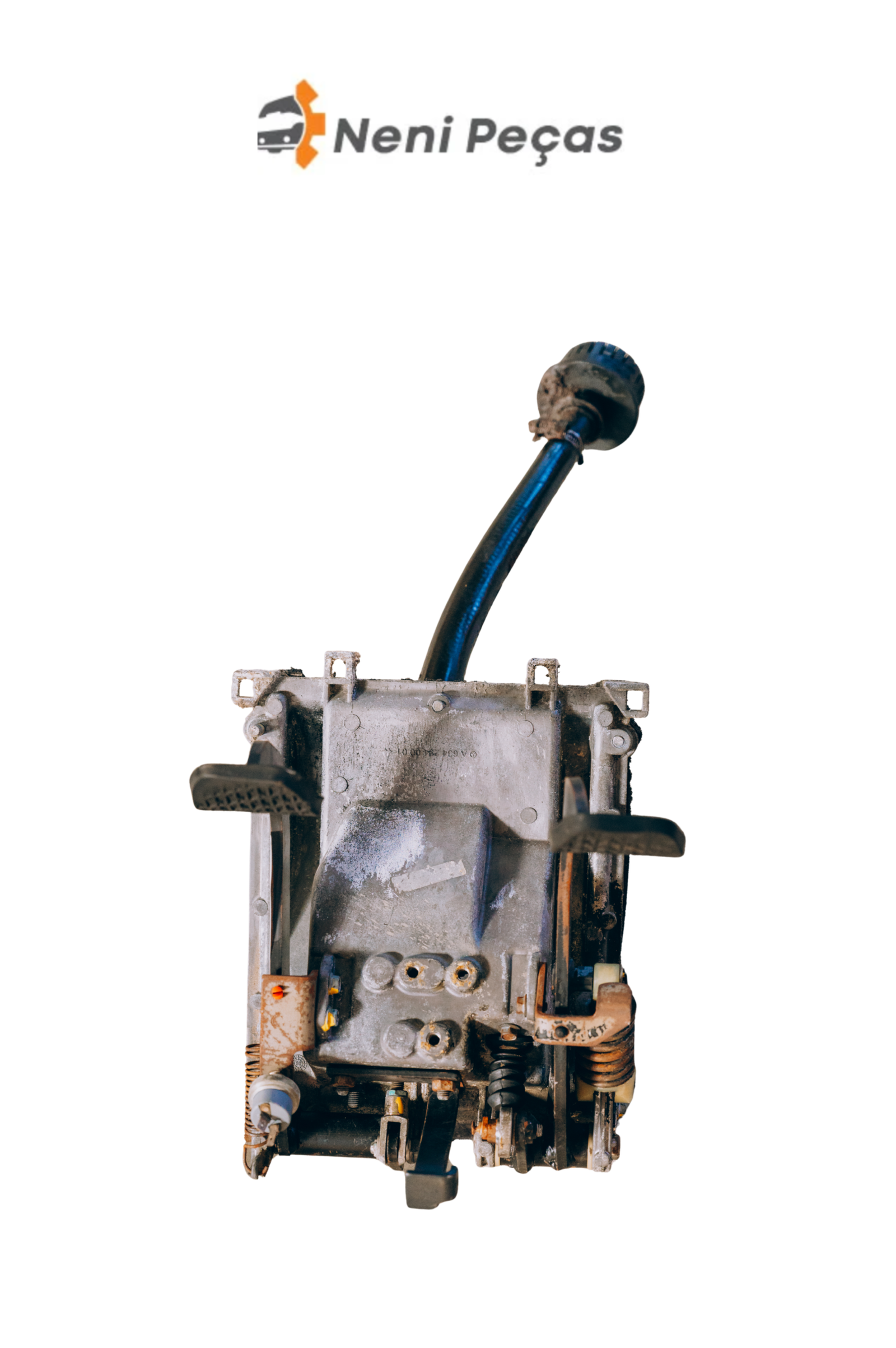 Pedaleira completa com válvula de freio, utilizada em caminhões e ônibus Mercedes-Benz, responsável pelo acionamento do sistema de freio pneumático.